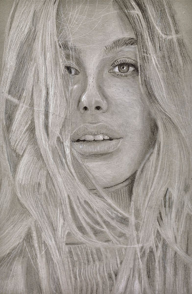 This is a notable piece in terms of refining my process, I made sure to focus greatly on replicating the image's original values and fabricating details the original image lacked, such as adding hairs and pores. This piece is also larger than most which added a greater challenge when applying the greater level of detail I have grown accustomed to in more recent works. It is also special to me because I took great inspiration from Sarah Perry in defining a style for myself before starting my transition.